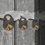 Each padlock is made from premium solid iron with handcrafted brass detailing. The rusted antique finish ensures that no two pieces are identical, making every lock one of a kind. Skilled artisans in India carefully shape and finish each piece, keeping alive traditional methods of metalwork.