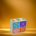 This wooden almirah measures approximately 8 inches in width, 4 inches in depth, and 8 inches in height, offering a compact yet functional size suitable for various spaces in your home. It comes equipped with four drawers, each designed to provide organized storage for jewelry, trinkets, or other small valuables. The drawers are easy to access while maintaining a secure space for your items, making this almirah both practical and stylish.