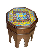 Every table is carefully handmade by skilled Indian artisans, ensuring no two pieces are exactly alike. The combination of traditional woodworking and decorative tiles creates a collectible furniture item that celebrates centuries-old artistry.