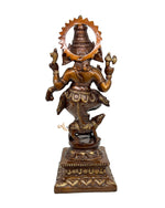 The Brass Dancing Ganesha, also known as Nritya Ganpati, on Mouse is a magnificent handcrafted statue that combines traditional Indian spirituality with timeless artistry. Standing 23 inches tall, this divine idol is created by master artisans in India and finished with an antique copper polish that enhances its visual appeal. Available at Al Athar Arts in Sharjah, this masterpiece is perfect for homes, temples, meditation spaces, hotels, and corporate interiors across the UAE and wider GCC region.