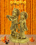 This Brass Radha Krishna Divine Couple Statue embodies devotion, artistry, and elegance, making it a timeless addition to any home or spiritual setting.