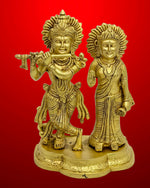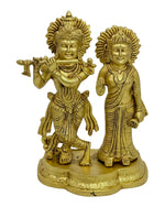 Brass Radha Krishna Divine Couple Statue – Hand Engraved Gold Antique Finish
