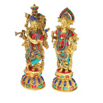 18-Inch Handcrafted Brass Radha Krishna Idol Pair with Stone Inlay | Traditional Hindu Temple Sculpture | Wholesale & Retail | Al Athar Arts UAE