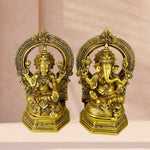 Handcrafted Brass Lakshmi Ganesh Idol Set – 10 Inch | Antique Yellow Finish | Made in India |