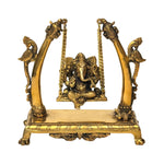 The statue is made from premium-quality brass, ensuring durability and a timeless appeal. Expert craftsmen have applied an antique yellow finish that enhances the visual beauty and traditional elegance of the idol. Intricate hand engraving adorns the swing frame and Lord Ganesha’s attire, featuring lotus motifs, floral vines, and sacred symbols. Each detail reflects meticulous workmanship and centuries-old Indian artistic heritage.