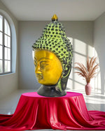 This Buddha head is meticulously handcrafted from 100 percent premium solid brass, a durable and corrosion-resistant copper-zinc alloy, ensuring it lasts for generations. Skilled artisans in India employ traditional casting and hand-engraving techniques to craft every detail. The serene facial expression, elongated earlobes, defined curls, and spiritual symbols such as the urna and ushnisha are delicately carved, reflecting authentic craftsmanship. Each statue is unique, with subtle variations highlighting the artisanal touch.