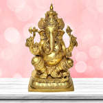 Handmade Brass Lord Ganesha Idol – 15 Inch Antique Yellow Finish