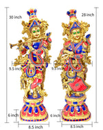 Brass Radha Krishna Idol Pair with Stone Work – 30 Inch Handcrafted Divine Statue