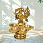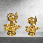 Enhance the spiritual ambiance and aesthetic charm of your home temple with the Handcrafted Brass Peacock Diya, a beautiful representation of Indian tradition and artistry. Featuring a meticulously designed peacock motif, this diya symbolizes grace, prosperity, and positive energy, making it both a functional pooja lamp and a decorative statement piece. Expertly handcrafted by skilled Indian artisans, each diya is a unique creation that brings timeless elegance and cultural richness into your home.