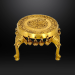 Made from 100 percent solid brass, this chowki ensures durability, weight, and stability. The antique yellow patina gives it a warm, vintage glow reminiscent of heirloom temple artifacts. Every detail is intricately hand-carved by master artisans from India, carrying forward generations of metalwork expertise.