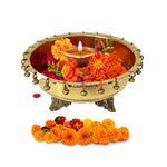 This urli is a timeless decorative and spiritual bowl, handcrafted with intricate floral and traditional motifs. Measuring 13 inches in diameter, 5.75 inches in height, and 4.25 inches in depth with an approximate weight of 3.2 kilograms, it is ideal for holding water, floating flowers, or diyas during rituals and festivals. Commonly used for Diwali, Navratri, Ganesh Chaturthi, and housewarming ceremonies, the urli also doubles as a stunning centerpiece for homes, hotels, and cultural events.