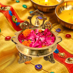 Bring home the essence of Indian tradition and spiritual elegance with our Handcrafted Brass Pooja Urli with Bell & Stone Work, exclusively available at Al Athar Arts, Sharjah, UAE. Designed with precision and devotion by skilled artisans from India, this exquisite urli bowl combines sacred symbolism with artistic beauty, making it an essential centerpiece for pooja rooms, luxury interiors, temples, and festive celebrations.