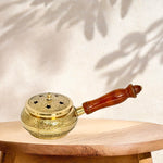 Brass Embossed Incense Burner – Round Shape with Wood Handle | Traditional Mabkhara | Wholesale and Retail UAE,
