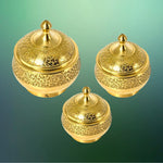 Each bowl is handcrafted by artisans, ensuring unique detailing and a perfect finish. The brass is embossed with an intricate design and coated with a gold finish, giving it a regal and timeless appearance that enhances the elegance of your table.