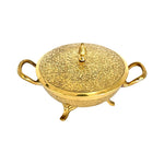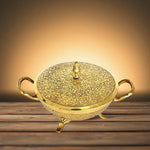 Add timeless charm and utility to your home with this elegant brass serving bowl with lid and handle, crafted with precision by skilled Indian artisans. Available in Big, Medium, and Small sizes, each bowl features detailed embossed artwork and a luxurious gold finish, making it a standout piece whether used for serving sugar, dry fruits, or snacks, or as a decorative centerpiece.