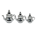 The teapot features a traditional Moroccan-style curved spout and handle, paired with a domed lid that completes its classic silhouette. Its reflective chrome finish creates a striking visual appeal while preserving the authenticity of Moroccan tea culture. The design is versatile, blending seamlessly with modern, traditional, or eclectic interior themes.