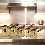 The coffee pot is available in multiple sizes to suit individual or professional needs, with capacities ranging from one hundred milliliters to two hundred fifty milliliters. This makes it ideal for brewing one to two servings of Turkish coffee, Arabic gahwa, or traditional tea. Its classic cezve shape with a wide base and narrow neck ensures even heat distribution for slow, authentic brewing.