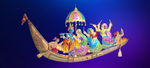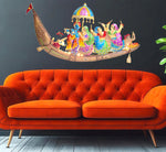 The panel depicts Lord Krishna and Radha seated on a boat, accompanied by a group of musicians and dancers, capturing the essence of divine love and festivity. Each scene conveys spiritual serenity, artistic elegance, and the rich cultural heritage of Rajasthan. The vibrant hand-painted hues and meticulous detailing celebrate traditional Indian folk art, bringing both aesthetic charm and spiritual energy to any interior.