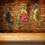 The padlock is designed in the shape of a fish, a symbol of prosperity, abundance, and good fortune in many Eastern cultures. It serves both as a functional lock for doors, cabinets, trunks, and gates, and as a collectible decorative item. The antique-inspired finishes give it a timeless look, perfect for vintage décor, cultural displays, or thematic interior settings.