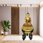The statue depicts Lord Buddha in the Dhyana Mudra, the meditative pose symbolizing wisdom, enlightenment, and inner peace. Its calm expression and detailed engravings create a serene spiritual aura. The antique golden finish enhances the idol’s heritage appeal, allowing it to complement both contemporary and traditional Middle Eastern interiors.