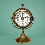 This table watch is meticulously handcrafted from solid brass, a material celebrated for its strength, durability, and timeless charm. Skilled Indian metal artisans shape and engrave each piece, creating smooth edges, elegant motifs, and a balanced structure. The clock is available in two luxurious finishes — antique patina for a vintage look and polished gold for a refined, contemporary shine. Its sturdy base ensures stability on desks, side tables, or display shelves.