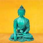 The Buddha statue is made from premium-quality resin, chosen for its durability, smooth finish, and ability to hold intricate hand-carved details. Each figure is meticulously handcrafted by expert artisans in Nepal, with decorative turquoise inlays carefully placed around the body and crown. These inlays add a touch of luxury and symbolic significance, creating a harmonious and vibrant aesthetic that complements any spiritual or decorative setting. The earthy tones of the resin paired with the turquoise accents make this piece visually captivating while maintaining its spiritual essence.